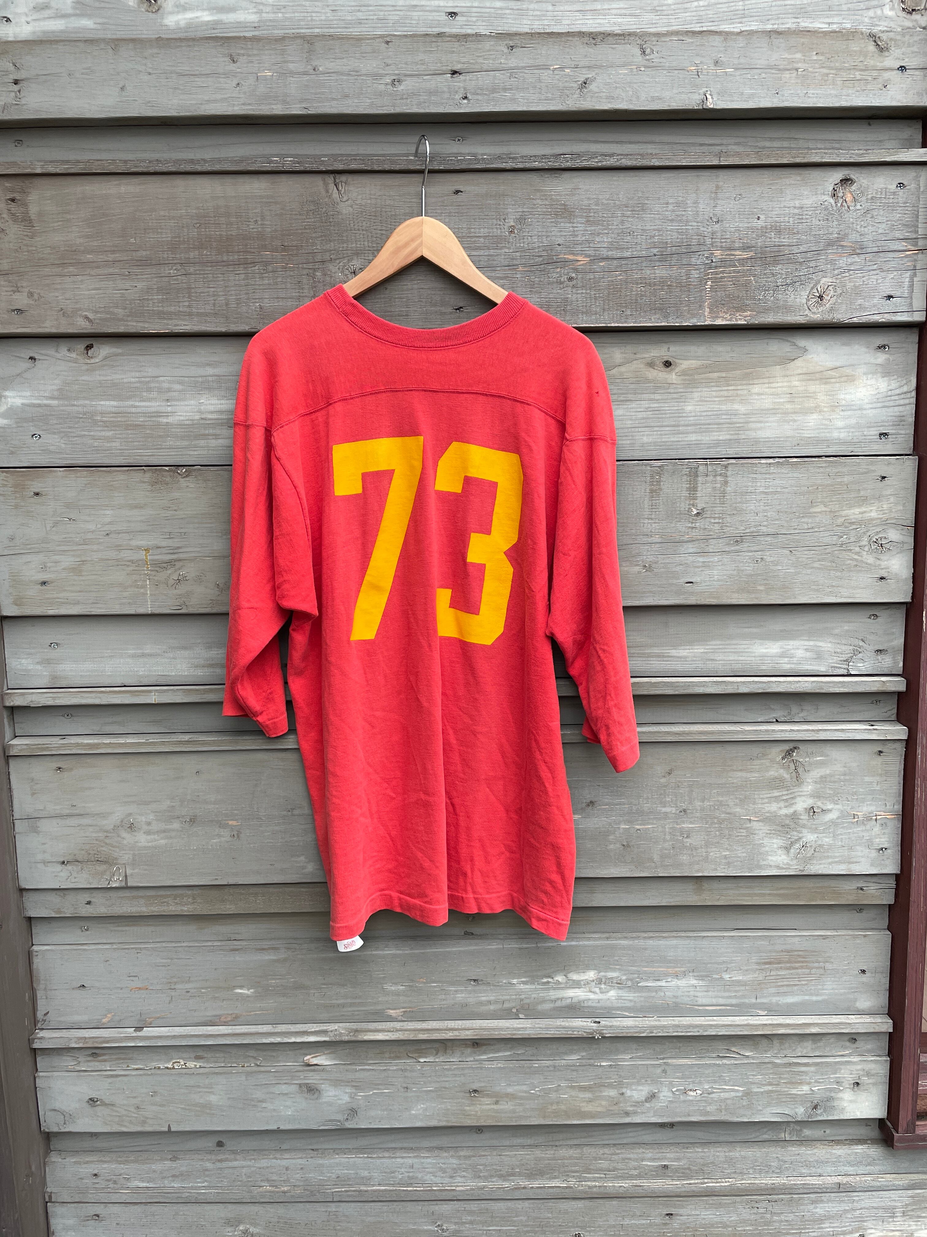 60年代のチャンピオンフットボールTシャツです。朱色の様な良いカラーです。
